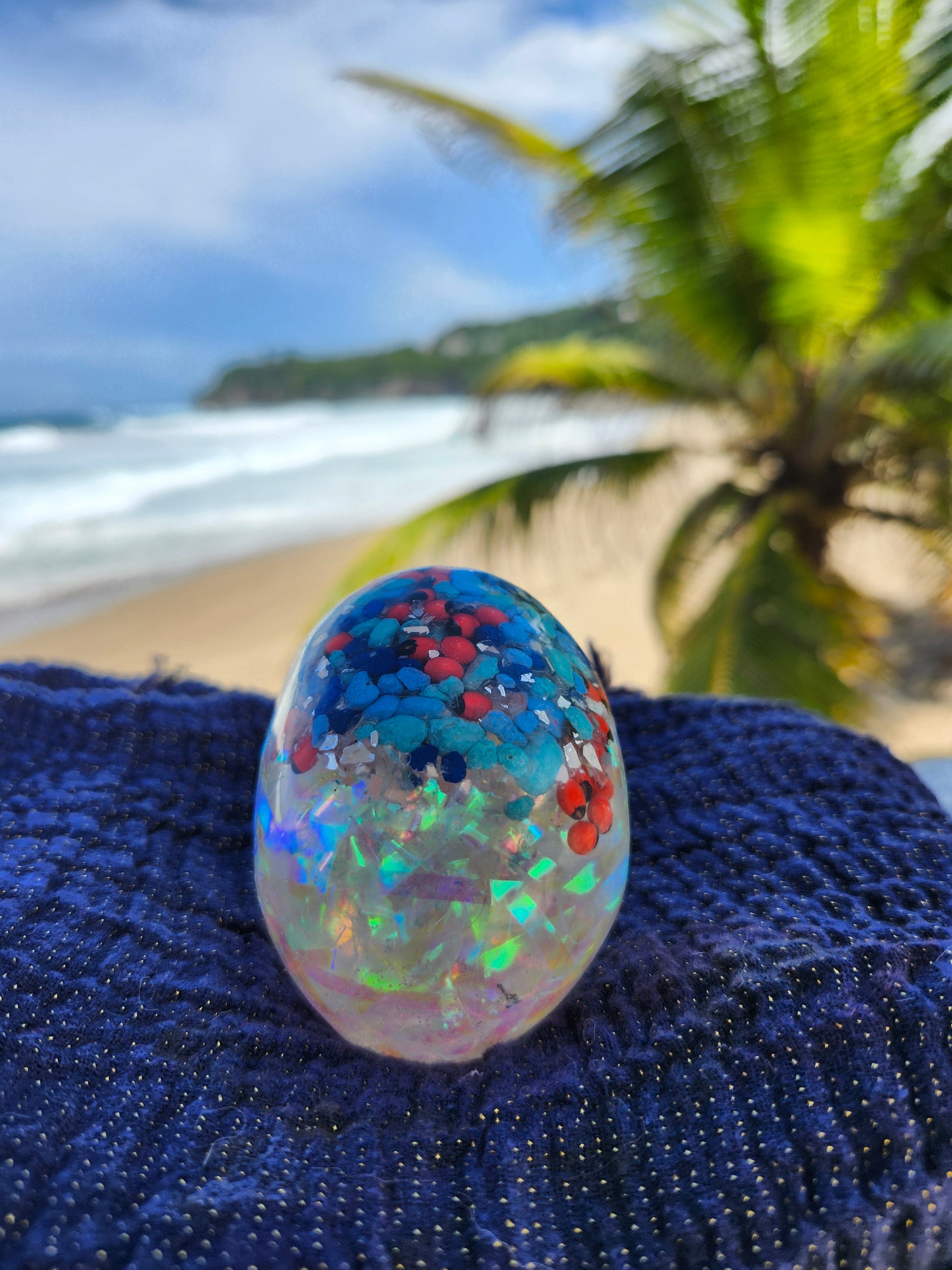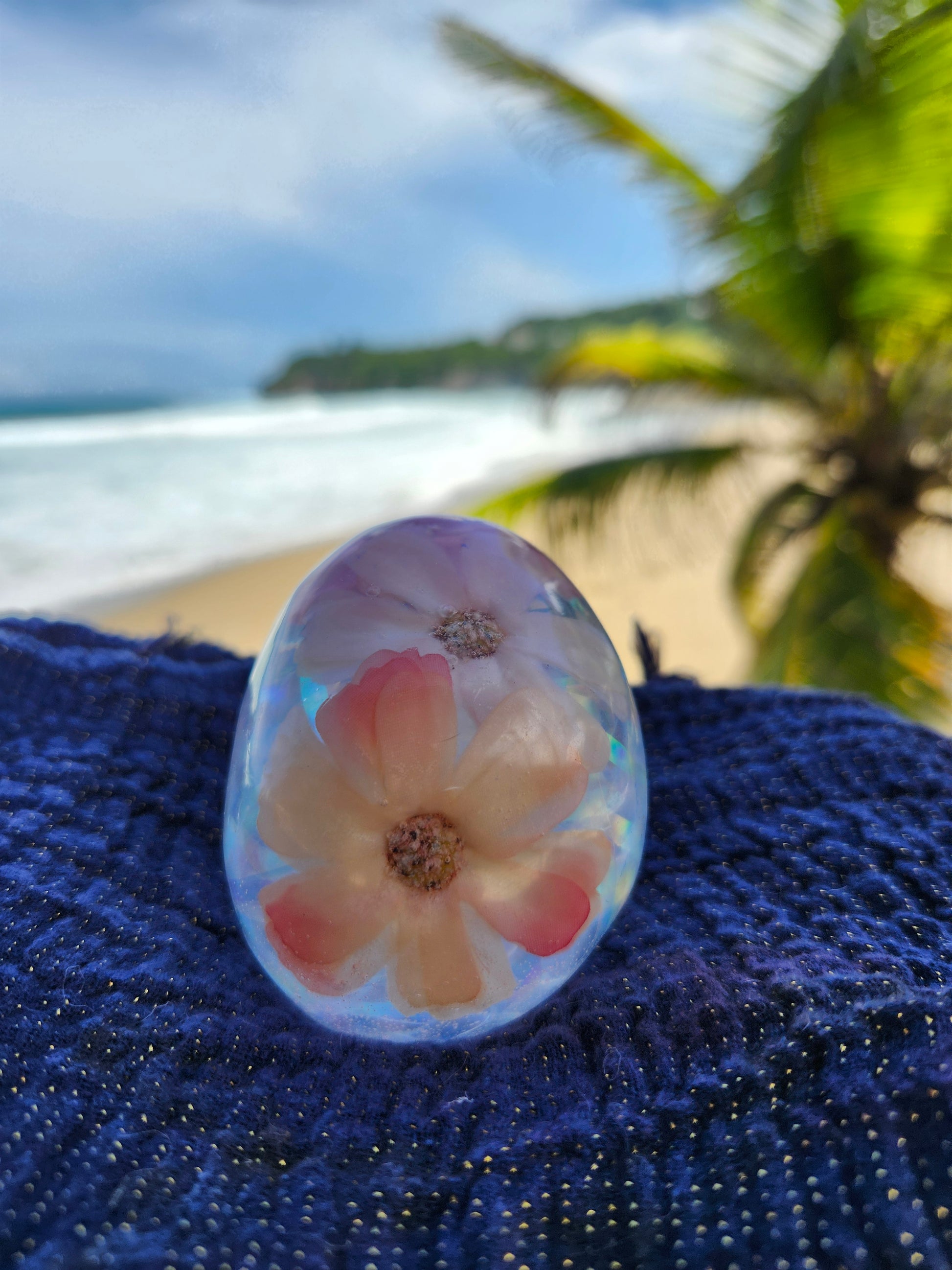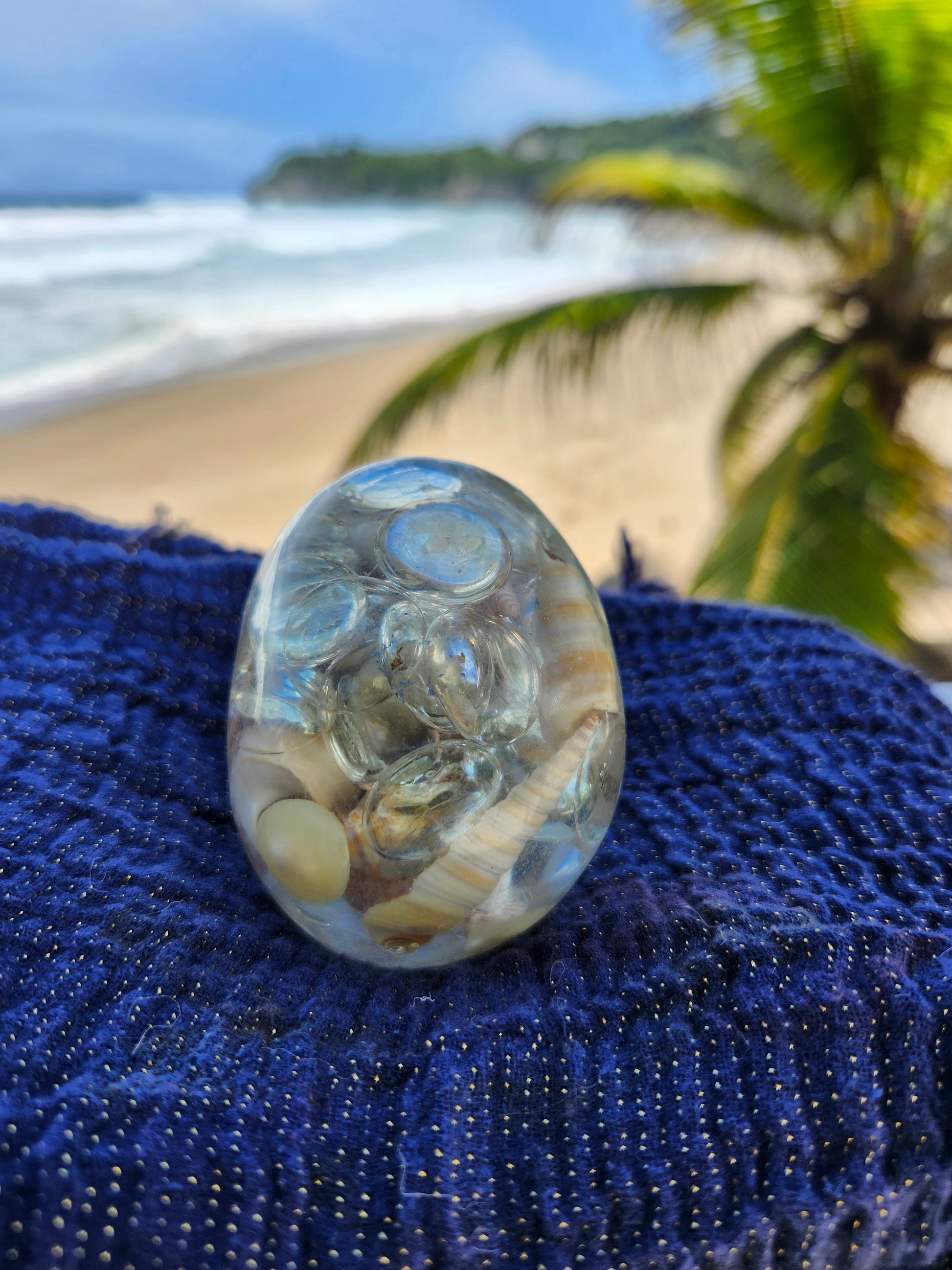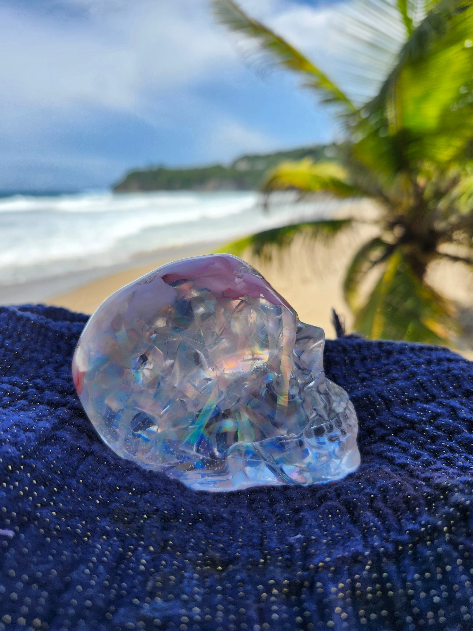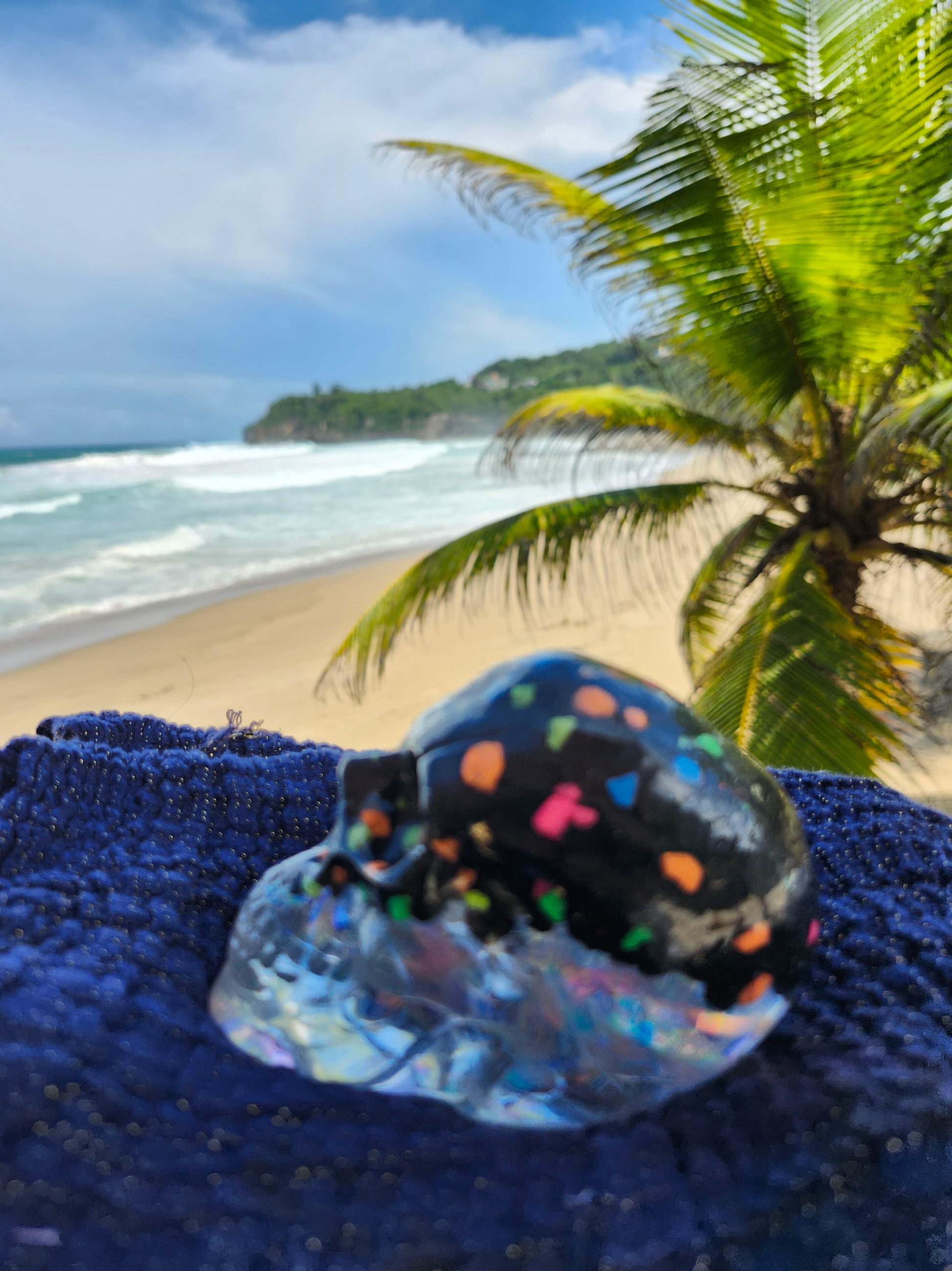 Calaveras medianas en resina, creadas a mano con elementos naturales de Puerto Rico como arena, caracoles y piedras. Cada pieza es única, fusionando tradición y encanto caribeño en un diseño artístico y original. Ideales para decoración, coleccionistas o regalos especiales que capturan la esencia tropical en un detalle distintivo.