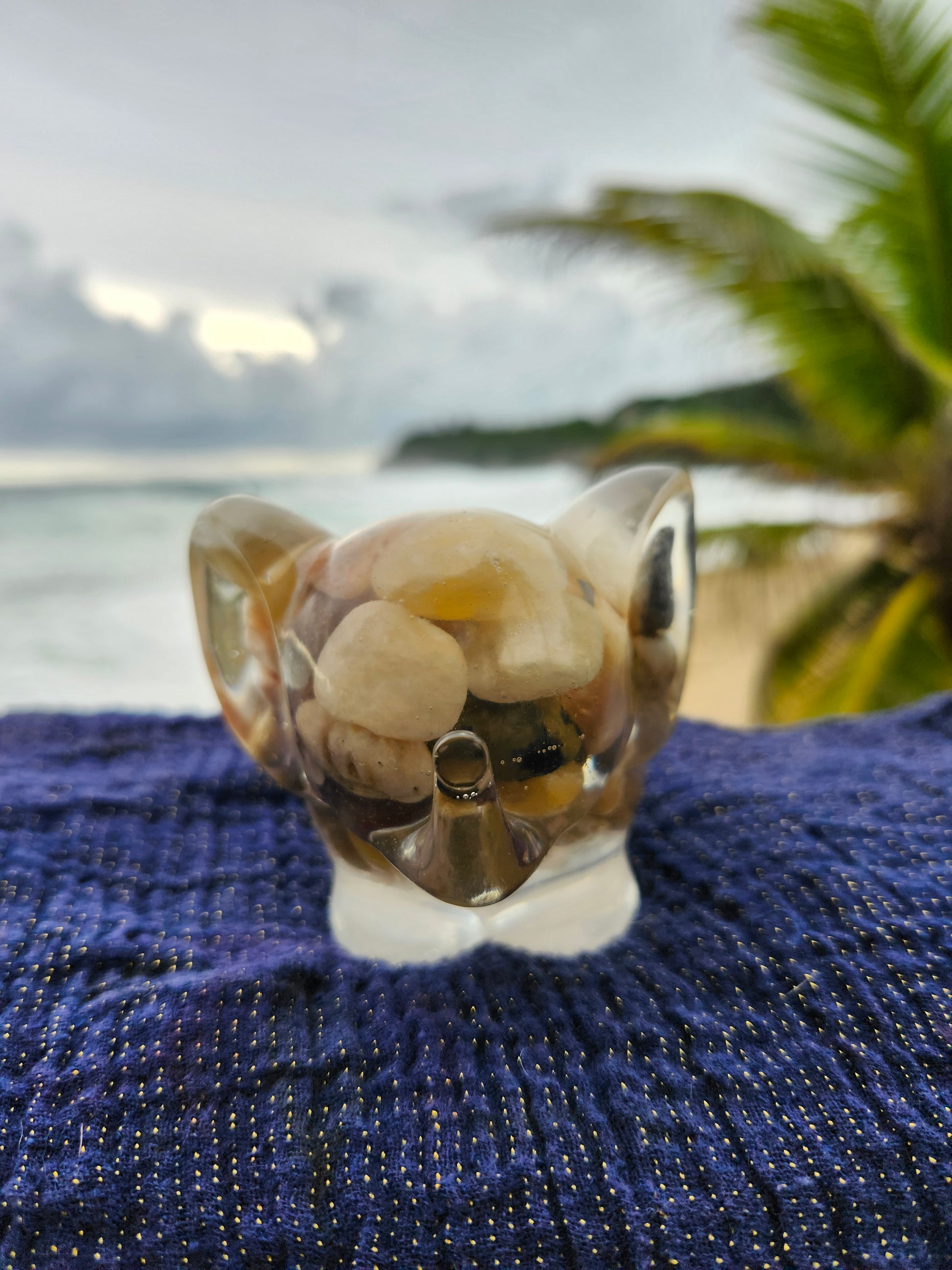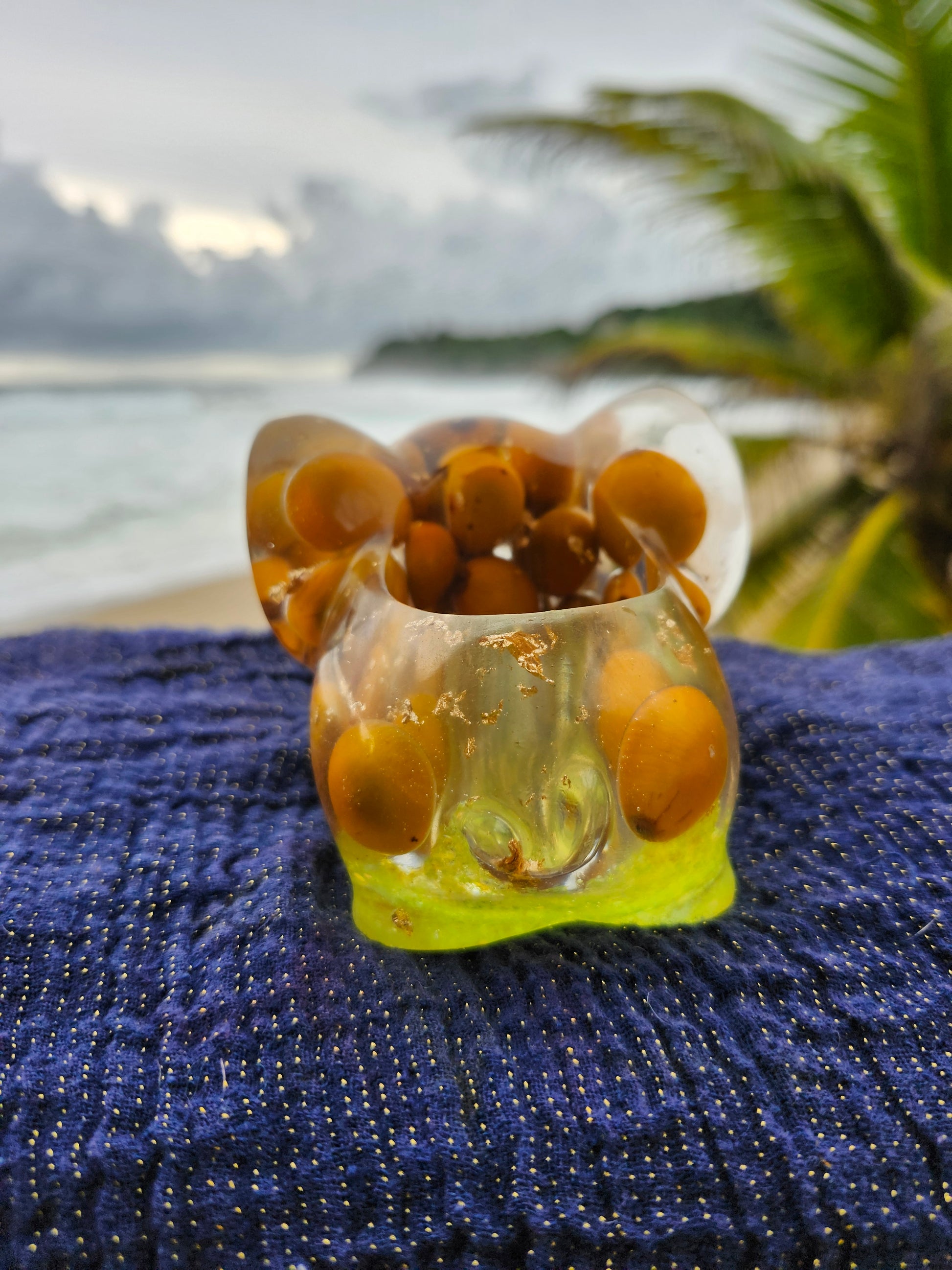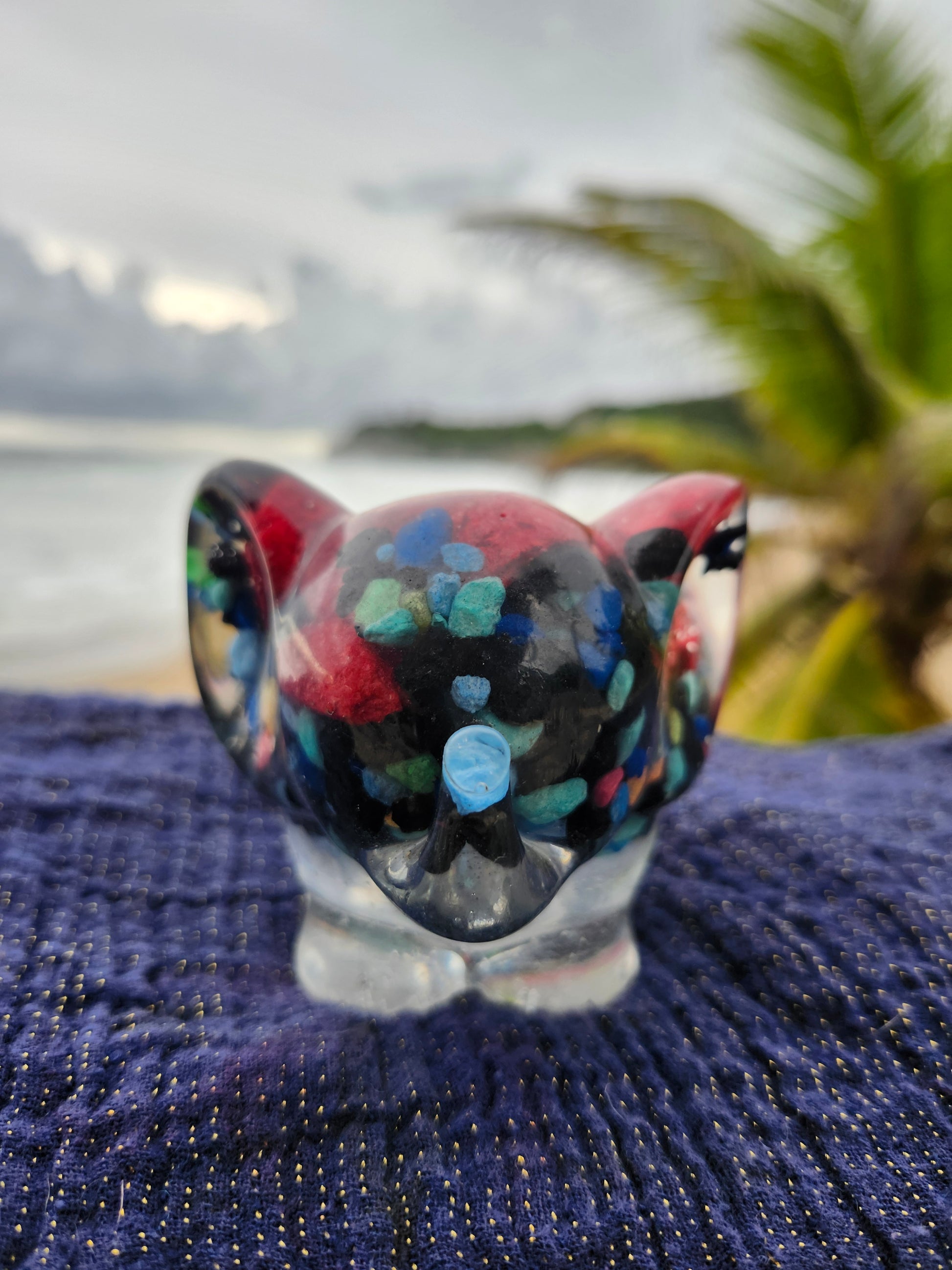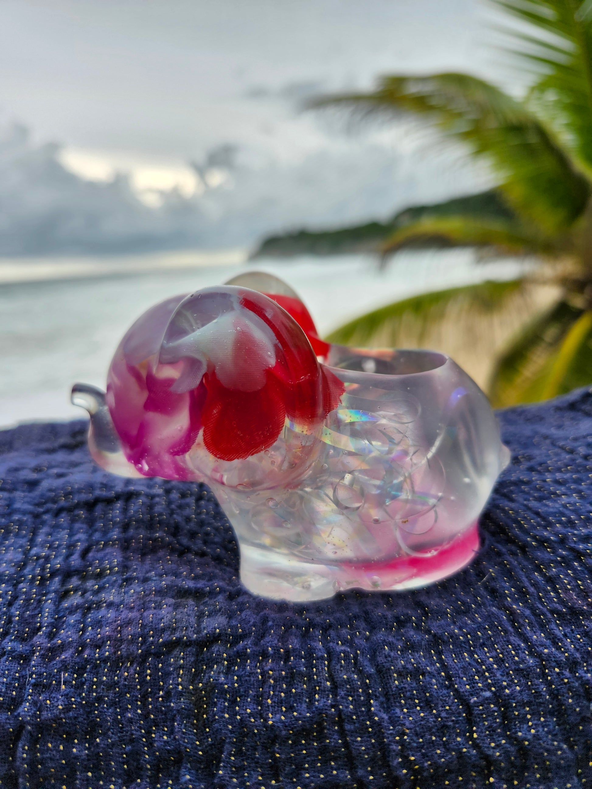 Elefante multiuso de resina: joyero, cenicero o candelabro. Pequeña obra de arte artesanal que captura la esencia de Puerto Rico. Cada pieza única está incrustada con arena de playa, micro-conchas o flores secas de la isla, creando un tesoro funcional con un toque del encanto boricua perfecto para tu hogar.