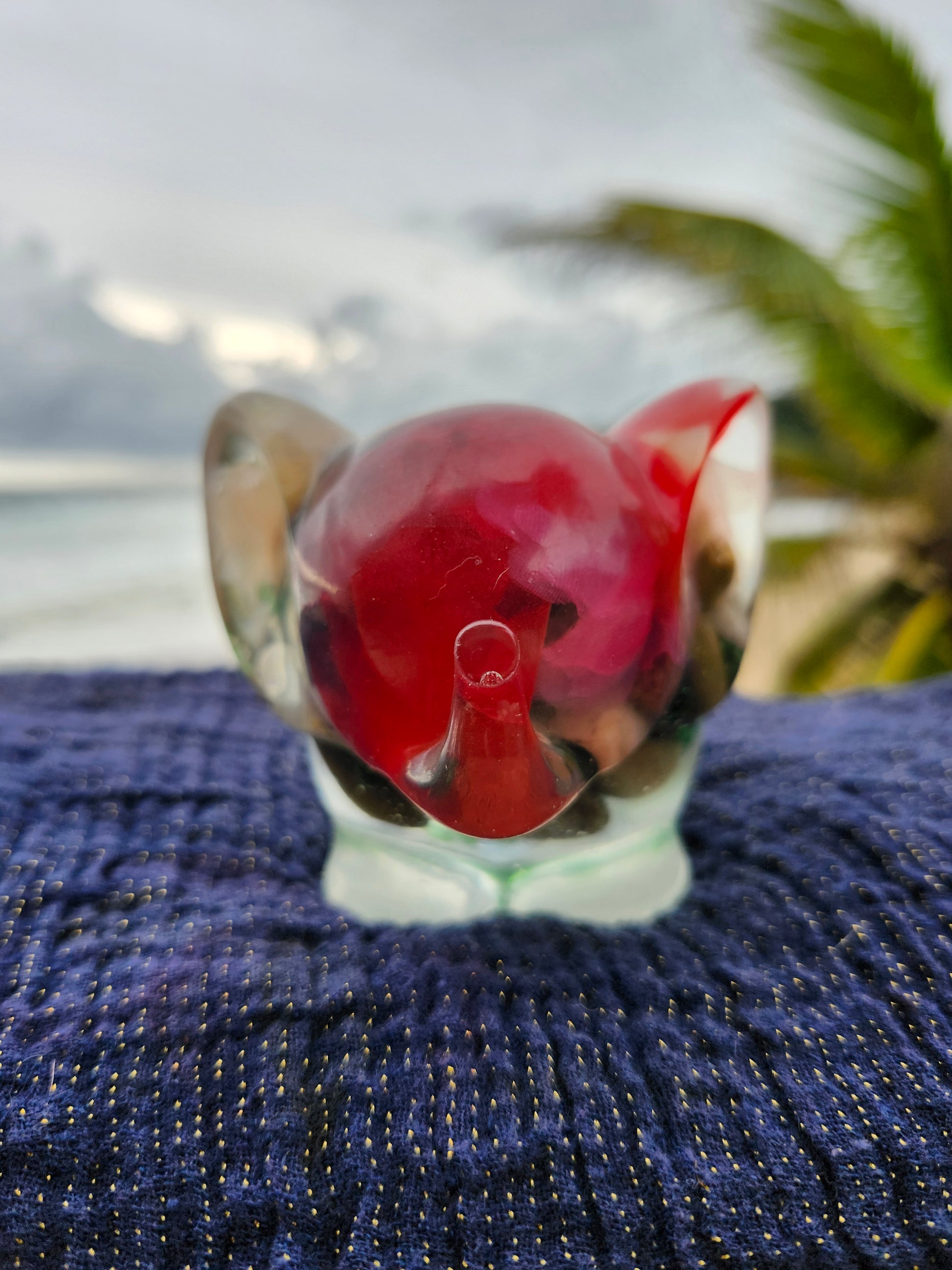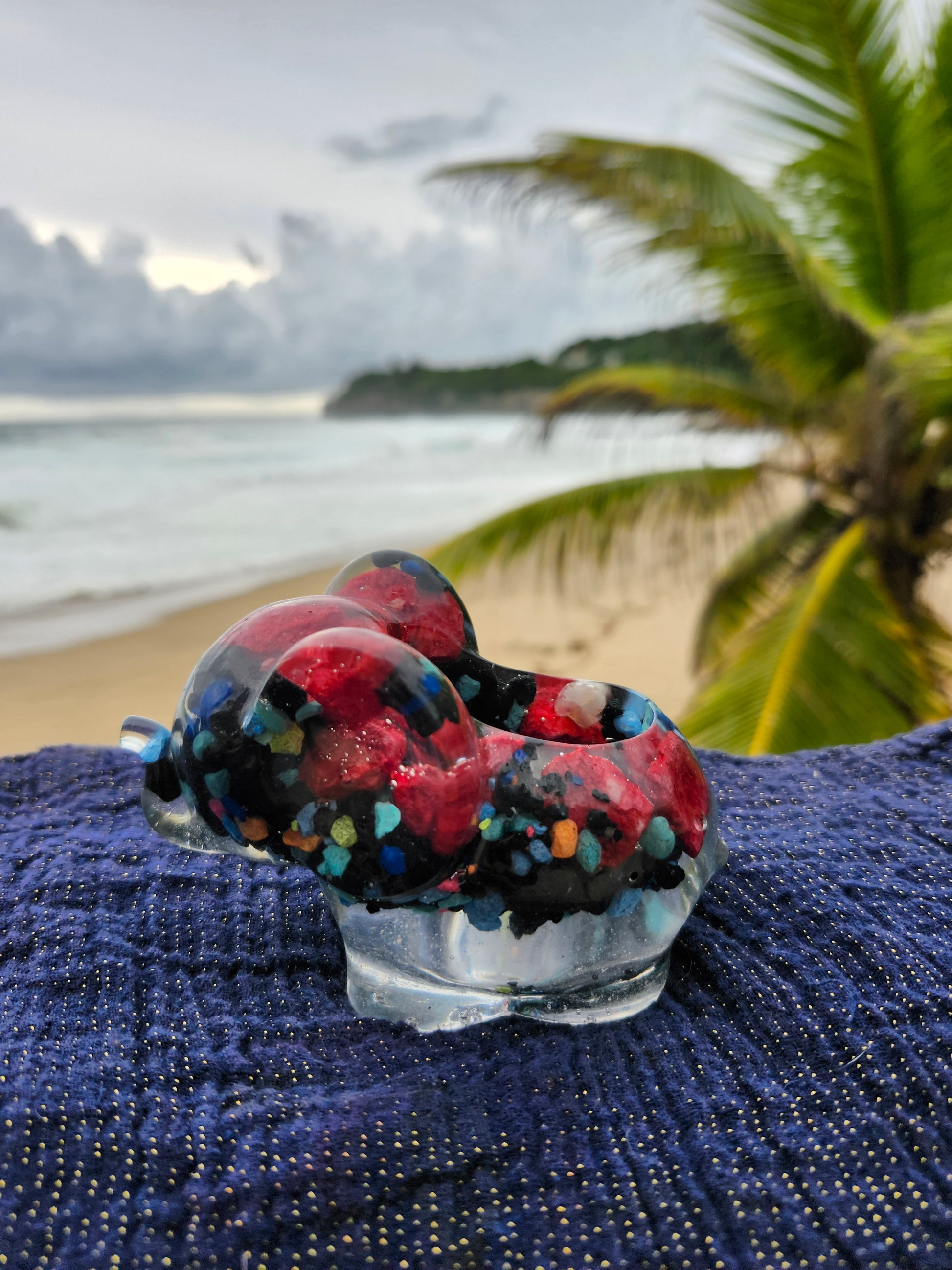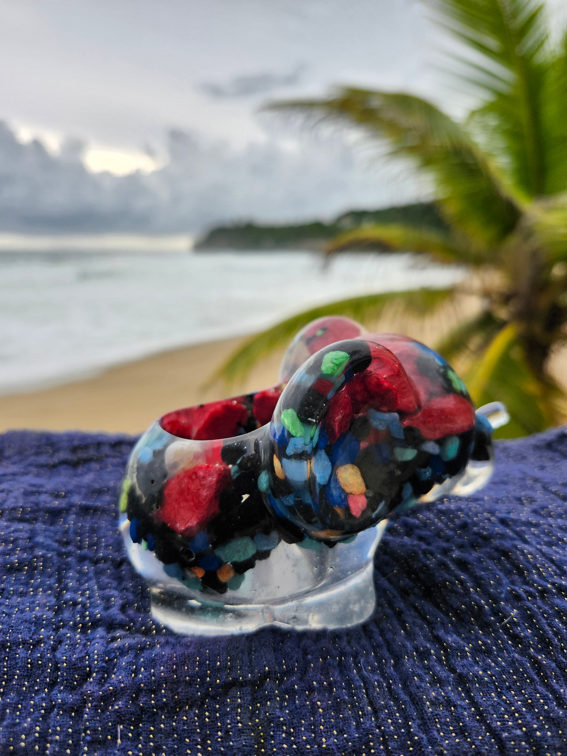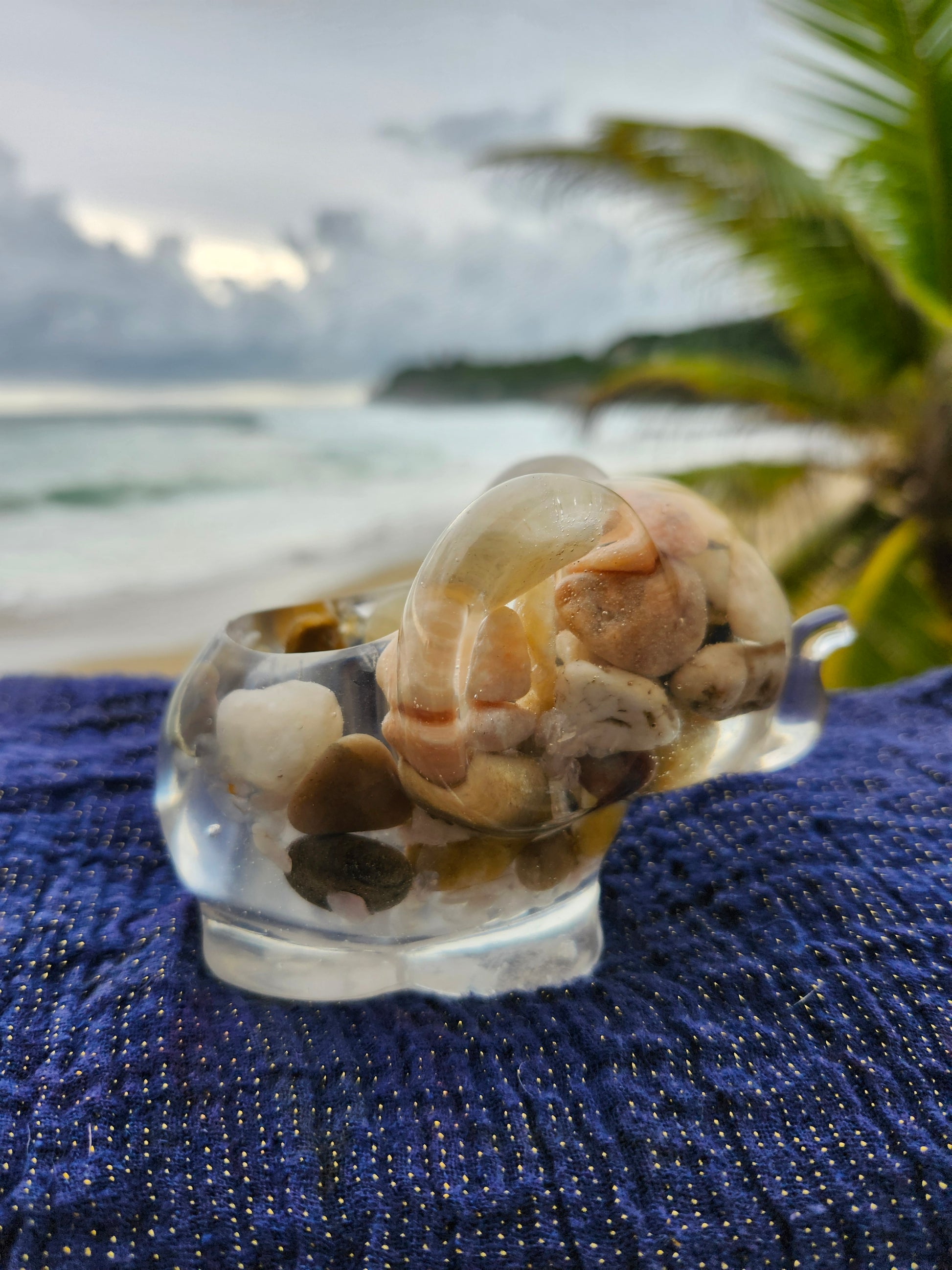 Elefante multiuso de resina: joyero, cenicero o candelabro. Pequeña obra de arte artesanal que captura la esencia de Puerto Rico. Cada pieza única está incrustada con arena de playa, micro-conchas o flores secas de la isla, creando un tesoro funcional con un toque del encanto boricua perfecto para tu hogar.