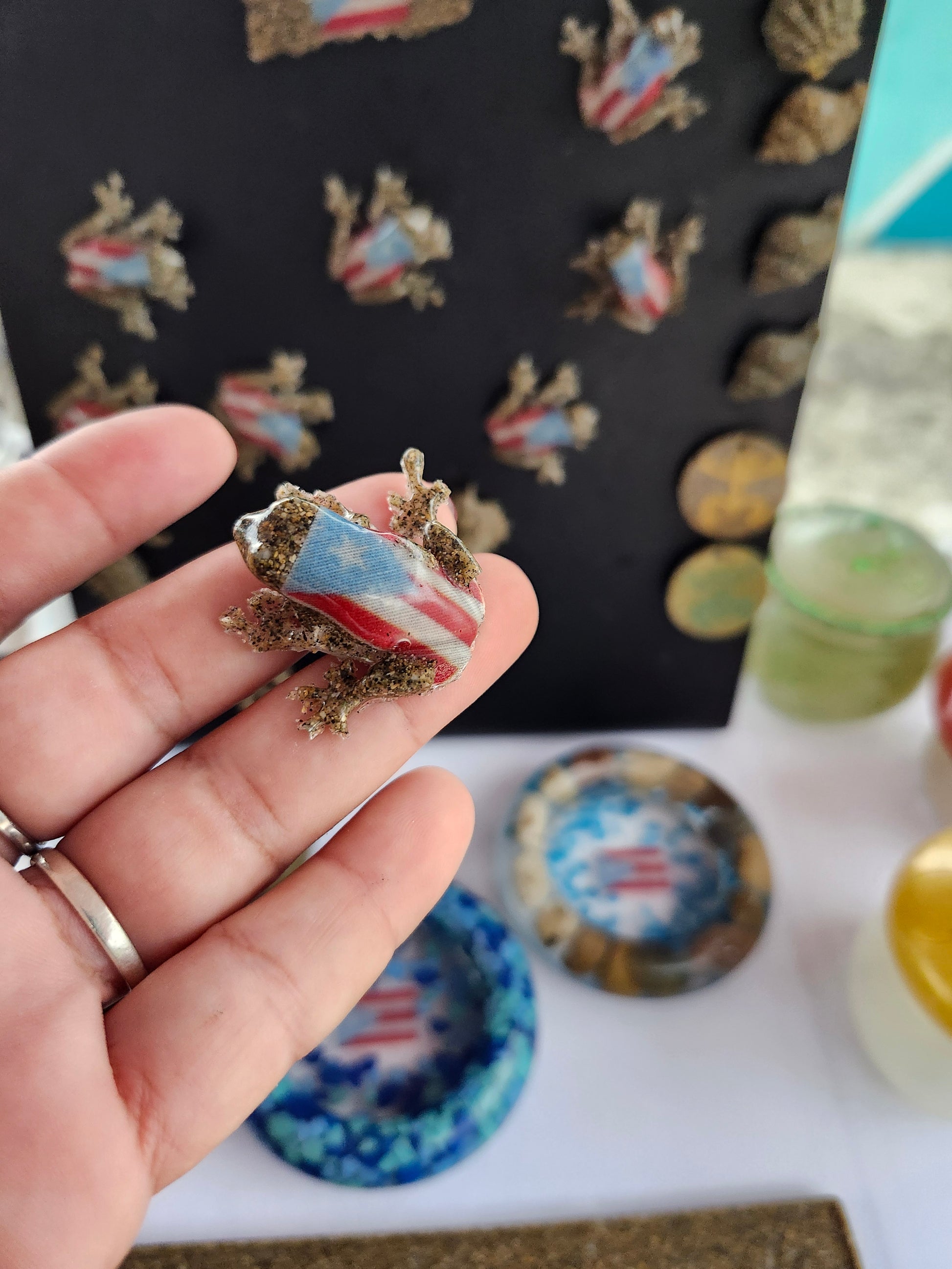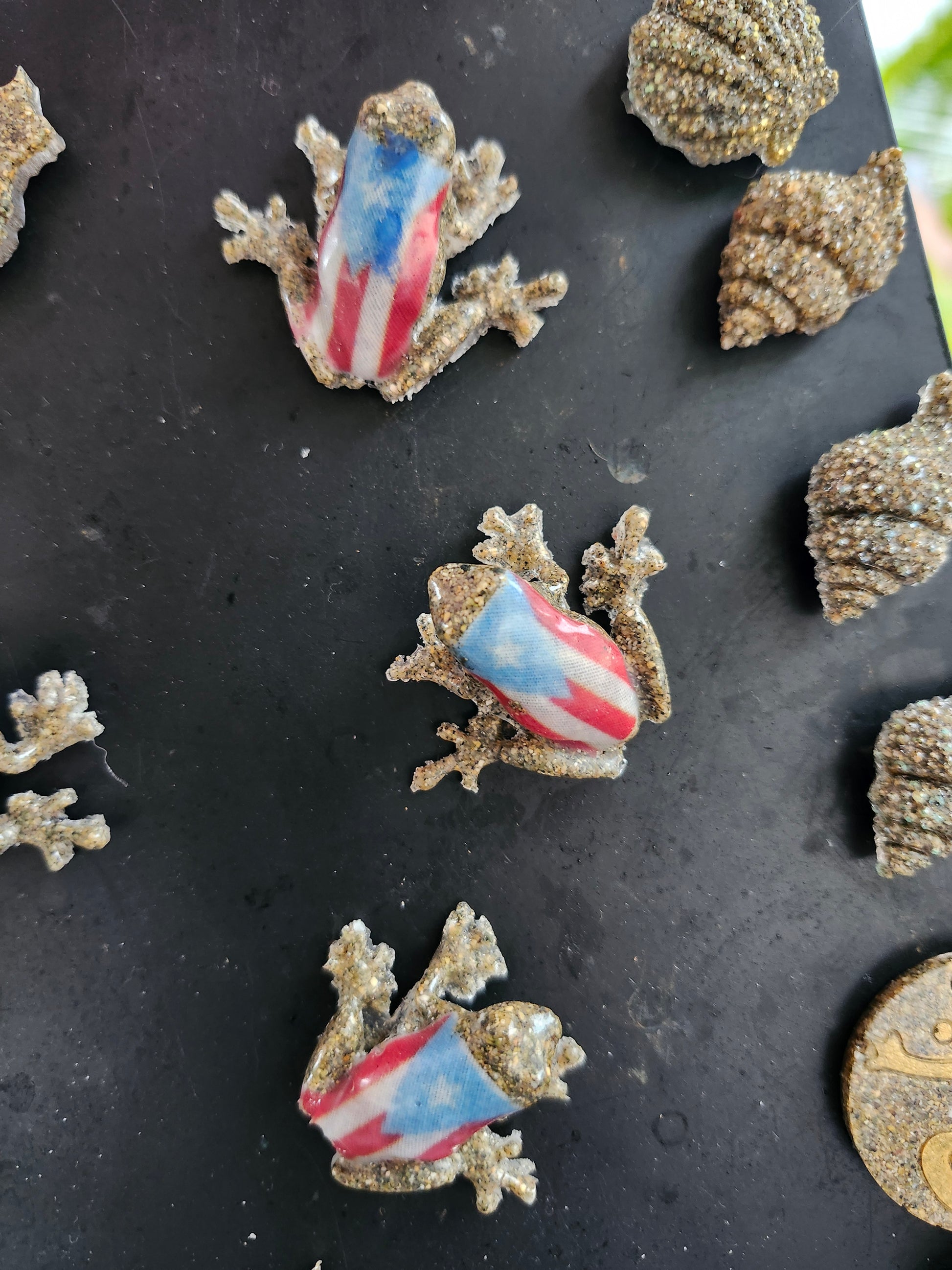 Imanes Coquí de Resina - Arena de Isabela, PR. ¡Lleva la cultura y playa a tu nevera! Estos imanes de coquí de tamaño real están hechos a mano, encapsulando arena auténtica de las costas de Isabela, Puerto Rico. Una forma encantadora y colorida de recordar el sonido de la isla. ¡Un regalo boricua único! También disponible sin imán.