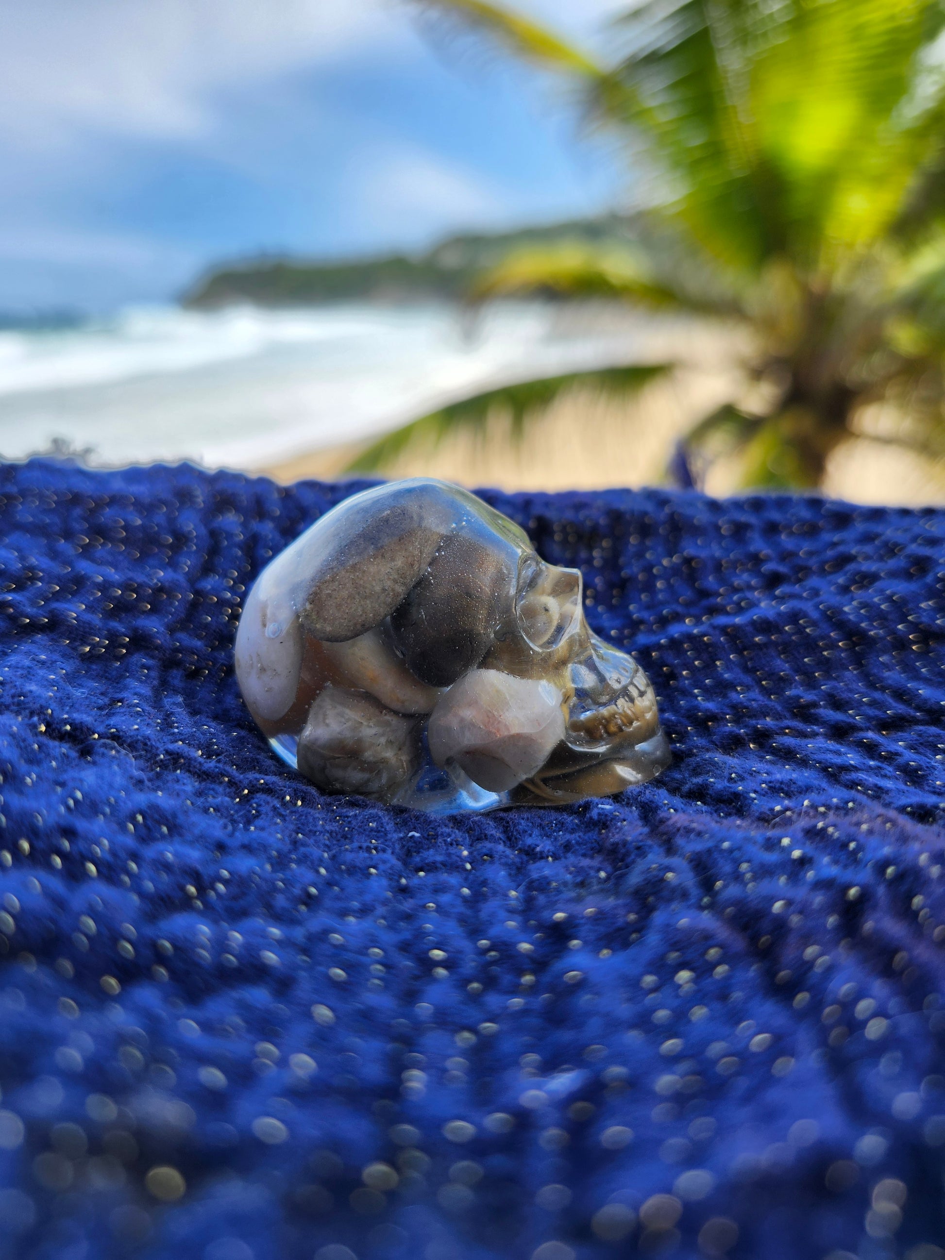 Calaveras pequeñas en resina, creadas a mano con elementos naturales de Puerto Rico como arena, caracoles y piedras. Cada pieza es única, fusionando tradición y encanto caribeño en un diseño artístico y original. Ideales para decoración, coleccionistas o regalos especiales que capturan la esencia tropical en un detalle distintivo.