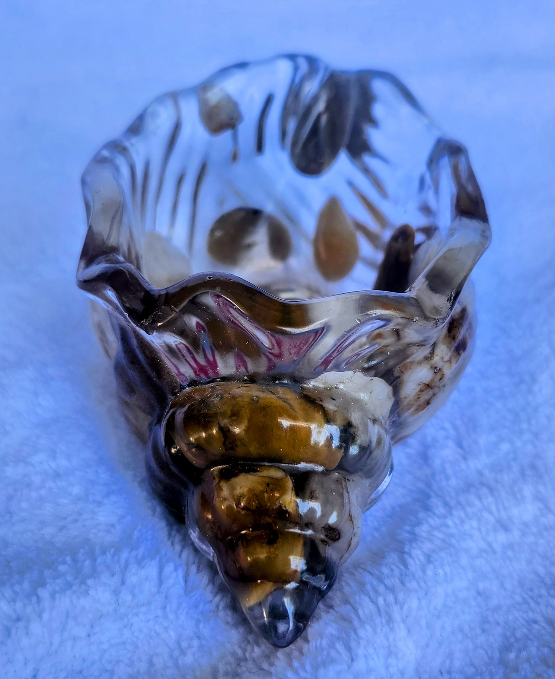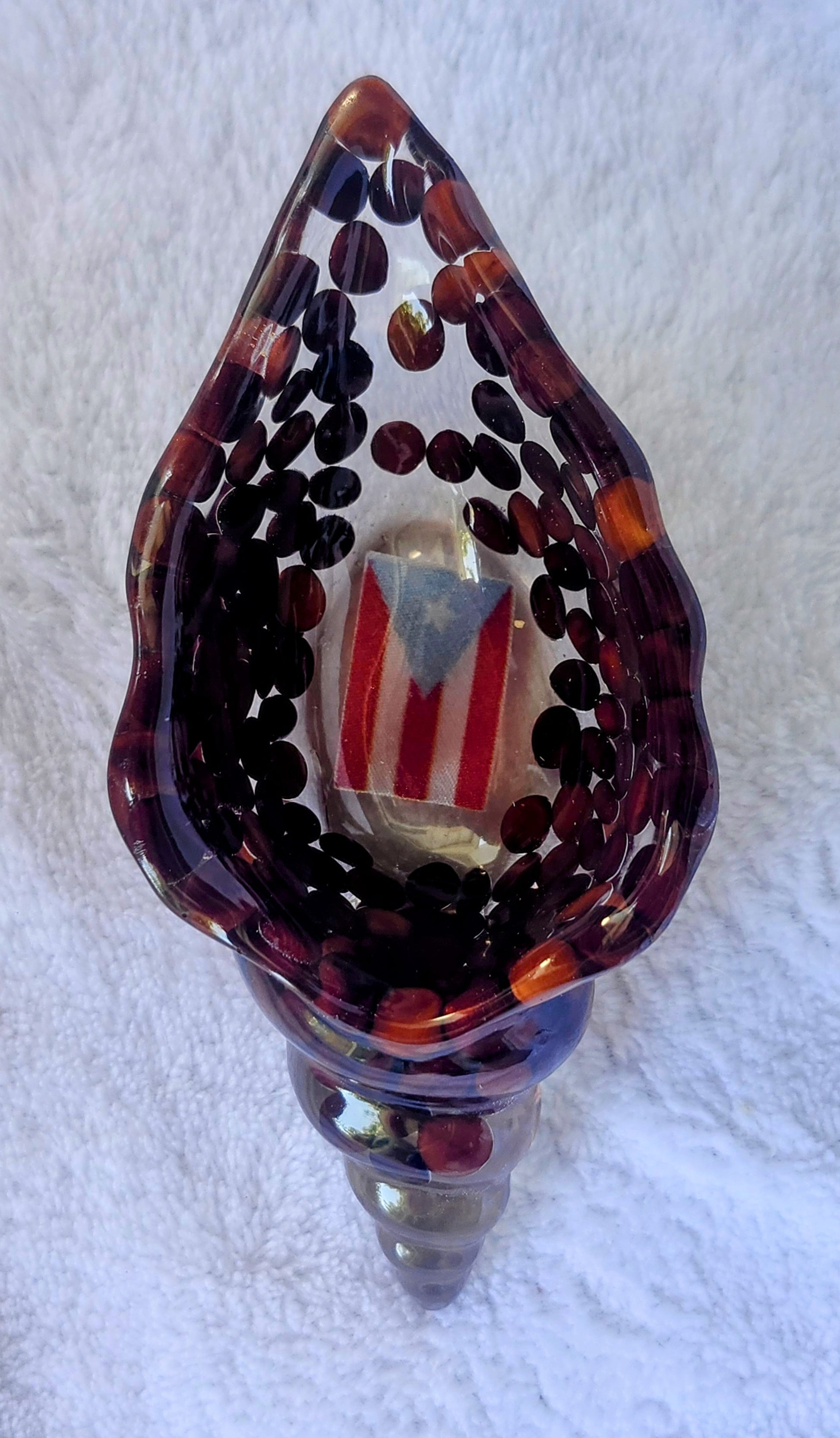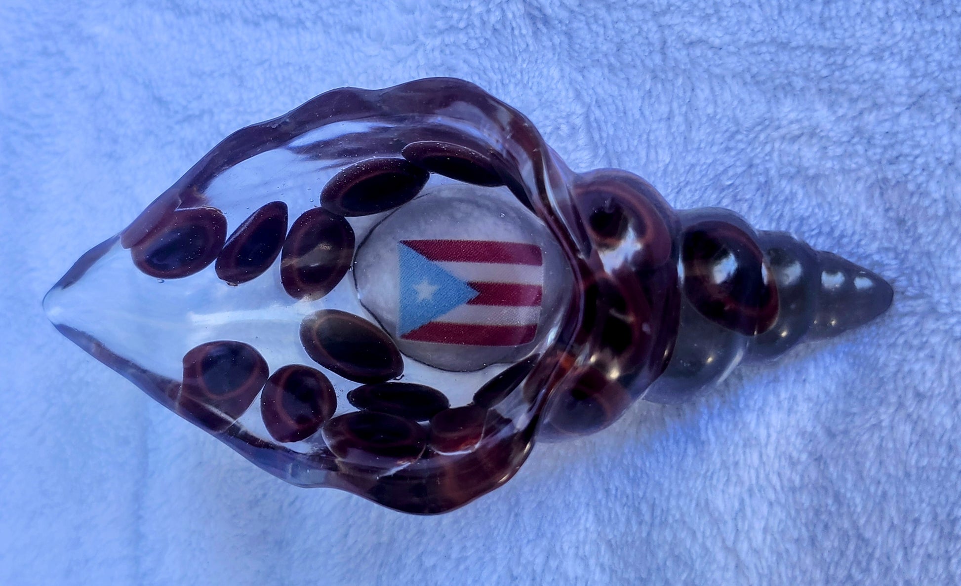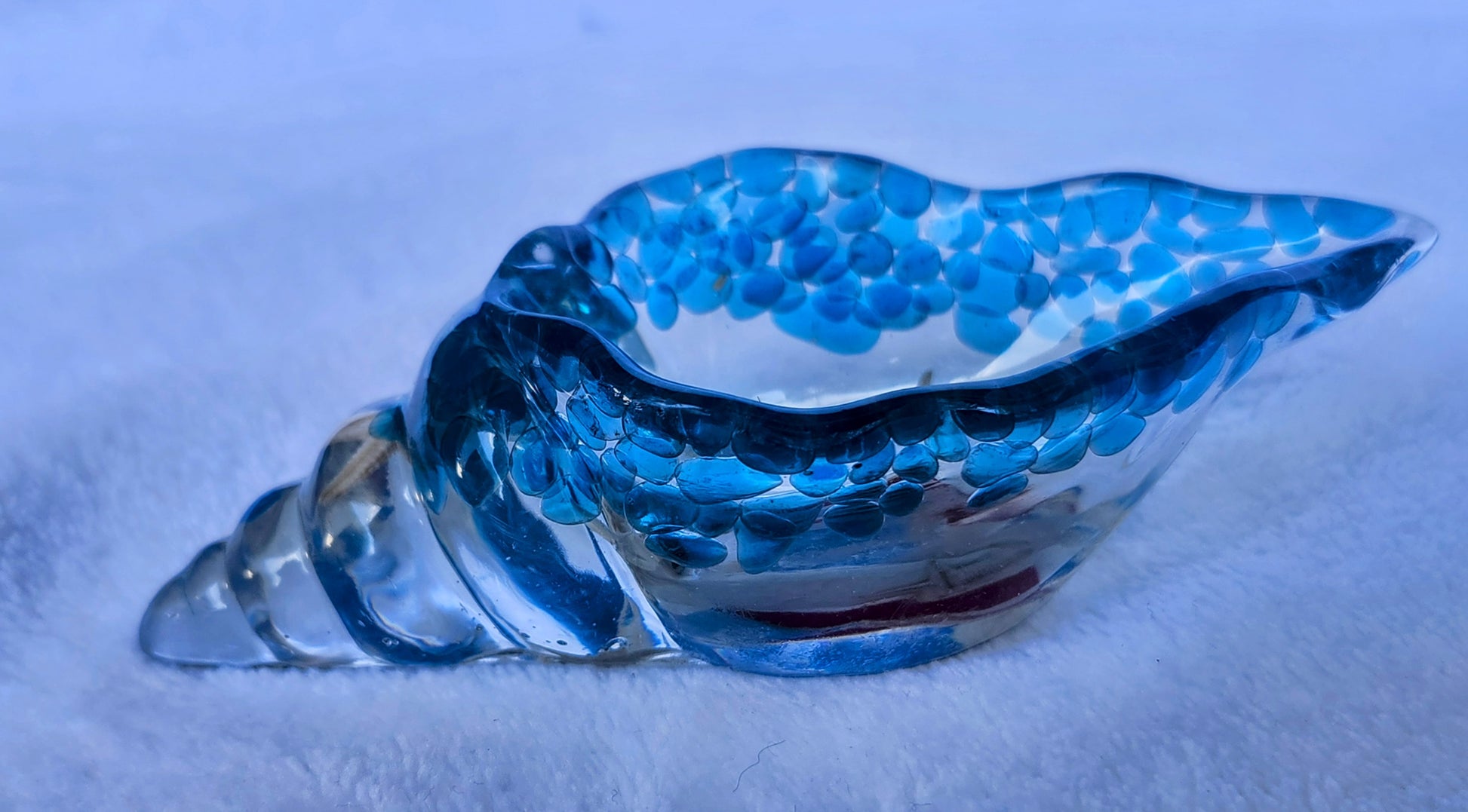 Caracol multiuso de resina: joyero, cenicero o candelabro. Pequeña obra de arte artesanal que captura la esencia de Puerto Rico. Cada pieza única está incrustada con arena de playa, micro-conchas, piedras, cristales o flores secas de la isla, creando un tesoro funcional con un toque del encanto boricua perfecto para tu hogar.